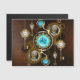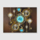 Turquoise lenses with an antique watch with brass gears and golden keys on rusty, brown background. Steampunk style.