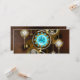 Turquoise lenses with an antique watch with brass gears and golden keys on rusty, brown background. Steampunk style.