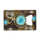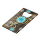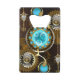 Turquoise lenses with an antique watch with brass gears and golden keys on rusty, brown background. Steampunk style.