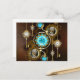 Steampunk Rusty Background with Turquoise Lenses Announcement Postcard