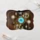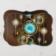 Turquoise lenses with an antique watch with brass gears and golden keys on rusty, brown background. Steampunk style.