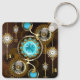 Steampunk Rusty Background with Turquoise Lenses Key Ring