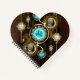 Turquoise lenses with an antique watch with brass gears and golden keys on rusty, brown background. Steampunk style.