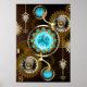 Steampunk Rusty Background with Turquoise Lenses Poster