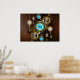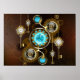 Steampunk Rusty Background with Turquoise Lenses Poster