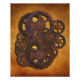Realistic illustration of old rusty gears and cogs on a grungy brown and rust background.