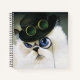 Long haired siamese cat portrait wearing a steampunk hat with goggles and a glass monocle.