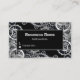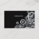 Steampunk style business card, with black background with 3-dimensional silver gears.