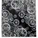 Steampunk style shower curtain, with black background with 3-dimensional silver gears.