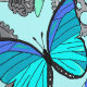 Steampunk skulls patterned wallpaper featuring skulls wearing top hats, cogs, gears, butterflies, dragonflies and hot air ballons in blue and grey tones