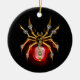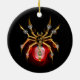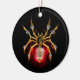 Mechanical, steampunk spider with gold, brass gears and a red glass lamp on a black background. Steampunk style.