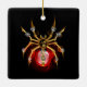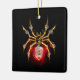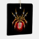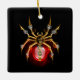 Mechanical, steampunk spider with gold, brass gears and a red glass lamp on a black background. Steampunk style.