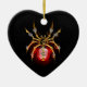Mechanical, steampunk spider with gold, brass gears and a red glass lamp on a black background. Steampunk style.