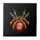 Mechanical, steampunk spider with gold, brass gears and a red glass lamp on a black background. Steampunk style.