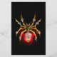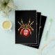 Mechanical, steampunk spider with gold, brass gears and a red glass lamp on a black background. Steampunk style.