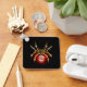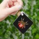 Mechanical, steampunk spider with gold, brass gears and a red glass lamp on a black background. Steampunk style.