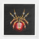 Mechanical, steampunk spider with gold, brass gears and a red glass lamp on a black background. Steampunk style.