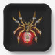 Mechanical, steampunk spider with gold, brass gears and a red glass lamp on a black background. Steampunk style.