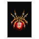 Mechanical, steampunk spider with gold, brass gears and a red glass lamp on a black background. Steampunk style.
