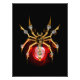 Mechanical, steampunk spider with gold, brass gears and a red glass lamp on a black background. Steampunk style.