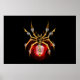 Mechanical, steampunk spider with gold, brass gears and a red glass lamp on a black background. Steampunk style.