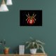 Mechanical, steampunk spider with gold, brass gears and a red glass lamp on a black background. Steampunk style.