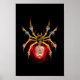 Mechanical, steampunk spider with gold, brass gears and a red glass lamp on a black background. Steampunk style.