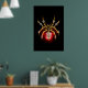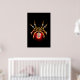Mechanical, steampunk spider with gold, brass gears and a red glass lamp on a black background. Steampunk style.