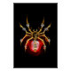 Mechanical, steampunk spider with gold, brass gears and a red glass lamp on a black background. Steampunk style.