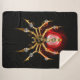 Mechanical, steampunk spider with gold, brass gears and a red glass lamp on a black background. Steampunk style.
