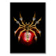 Mechanical, steampunk spider with gold, brass gears and a red glass lamp on a black background. Steampunk style.