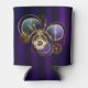 Steampunk spider made of gold and steel with antique watches decorated with gold gears on purple, striped, textured background with lenses and brass gears. Steampunk style.
