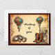 Steampunk airships and hot air balloons with steampunk goggles and Victorian boots set in front of a steampunk goblet appears on the front of this customisable postcard.