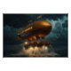 A miraculous human invention of great renown, "The Hydrogen Ship" or gigantic sky-liner invented in 1788 by Titus Kanbee, to serve during and after times of war either as a troop carrying or civilian passenger air vessel. In this artist's impression of the magnificent behemoth lifting above the waves as a lightning storm tests its ability to withstand and safely divert massive shocks of electrical current, making this one of the safest forms of travel. All designed with the gorgeous detailing that Steampunk inspires.