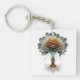 Steampunk Temporal Bloom: Mechanical Nature Engine Key Ring