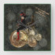 This cool steampunk design featuring two futuristic Penny Farthing bikes and two steampunks (male and female), is the creation of LeahG. Both the man and woman are wearing classic steampunk tophats (toopers) and googles. The man sports a vintage moustache and the lady a velvet black jacket and red neckerchief. The background features a time tunnel and several time pieces (pocket watches) spinning through time. The back of the cushion features the time travel theme minus the two steampunk characters.