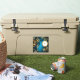 The stick looks amazing. Unfortunately, it would not stick on our suitcase as it was textured. When we found a non-textured (smooth) suitcase, the sticker stuck and looks great. The printing looked awesome.