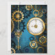 Turquoise, textured, steampunk background with brass and gold gears, a silver key and the clock. Steampunk style.