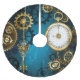 Steampunk turquoise Background with Gears Brushed Polyester Tree Skirt