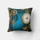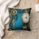 Steampunk turquoise Background with Gears Cushion