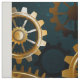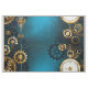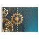 Turquoise, textured, steampunk background with brass and gold gears, a silver key and the clock. Steampunk style.