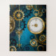 Steampunk turquoise Background with Gears Jigsaw Puzzle