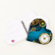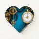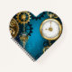 Turquoise, textured, steampunk background with brass and gold gears, a silver key and the clock. Steampunk style.
