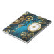 Turquoise, textured, steampunk background with brass and gold gears, a silver key and the clock. Steampunk style.