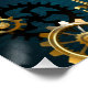 Turquoise, textured, steampunk background with brass and gold gears, a silver key and the clock. Steampunk style.
