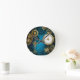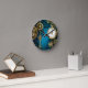 Turquoise, textured, steampunk background with brass and gold gears, a silver key and the clock. Steampunk style.