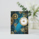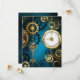 Turquoise, textured, steampunk background with brass and gold gears, a silver key and the clock. Steampunk style.