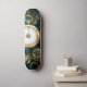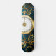 Turquoise, textured, steampunk background with brass and gold gears, a silver key and the clock. Steampunk style.