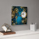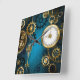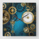 Steampunk turquoise Background with Gears Square Wall Clock