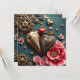 Personalised steampunk photo template Valentine's Day card. Pretty pink flowers and metal gears, The back has three spaces for pictures. You can edit the text too in the personalise area.